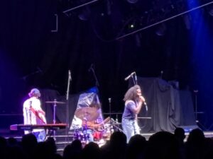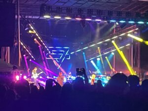 Rainbow Kitten Surprise was amazing as well. Their stage presence is so thought out, blocked, and colorful that it adds to the music. You really get to see the story of some of the songs. Their stage lights are mind blowing and were so beautiful; pictures don’t do it justice sadly. They are an alt rock indie band. RKS is made up of Ela Melo (lead vocals and writer), Darrick “Bozzy” Keller (guitar and backup vocals), Ethan Goodpaster (Electric guitar), and the great Jess Haney on drums. They played older and newer songs at this concert.