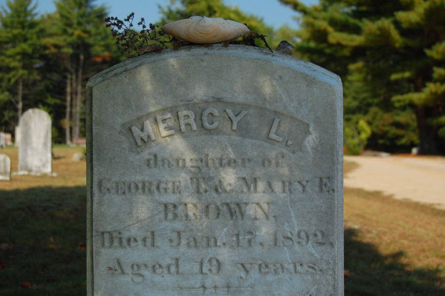 Mercy Brown 1884. She was a lively young woman, who was freshly married as well as the other story. Her cause of death, tuberculosis. At this time, there was no cure for tuberculosis, meaning 80% of all affected passed away.