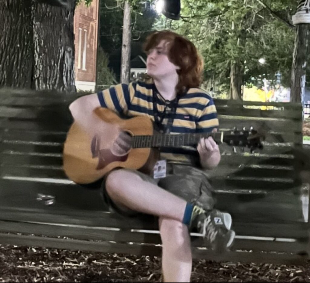 In march of last year, I auditioned to attend here at MSA just like the rest of you did. There I met Sarah and CJ. CJ wanted to start a band with the three of us plus David and my friend Em. Though this didn’t work out in the end, CJ brought back my passion to play guitar and learn more music. During orientation week, we spent a lot of time in the lounge playing guitar together. I was pushed by my peers to listen to music by artist I didn’t hear much of in my own playlists and play more complicated things. People sat and listened to us play, and really it brought me a type of happiness I hadn’t felt much. Maybe it was a bit prideful, or maybe it just felt good to make people smile when they heard music they liked. Whatever made be feel that specific type of happiness, I can thank guitar for it.