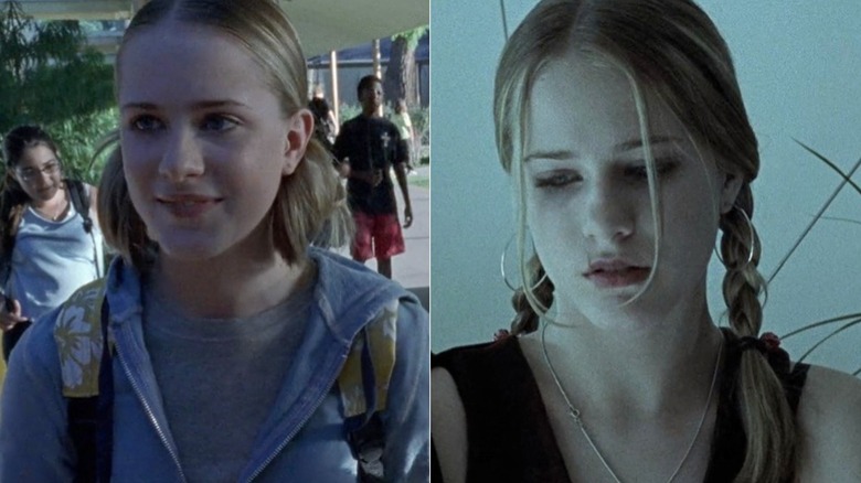 Evie was one of the “grown” girls in her grade. Tight shirts and lowrise jeans, with studded belts and hair extensions. On the second day of school while walking to the bathroom Evie insults Tracy’s Paul Frank socks. This sends Tracy through a spiral of throwing away all of her “childish clothes,” and buying more to impress Evie.